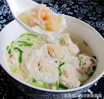 猪肉馅150g、虾100g、小馄饨皮150g、卷面100g、韭黄50g、蚝油适量、盐适量、料酒适量、鸡精适量、香油适量