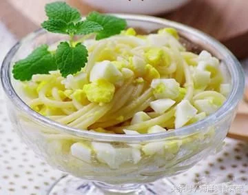 10)黄瓜冲洗干净,切成黄瓜丝,用盐腌一下鸡蛋煮熟后冷却剥皮,剖两半,梨和苹果切丝,泡菜切丝